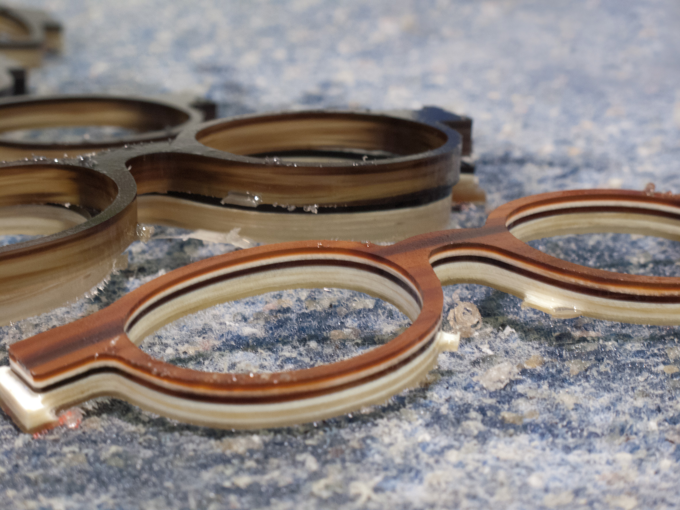 Each creation is handcrafted with great care by craftsmen in Germany. They work in respect of the material, it’s uniqueness and according to the client specific demands. Each frame is a masterpiece resulting of hours of work that glorifies it’s colours and unique depth.